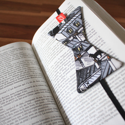 Marque page en tissu en forme de noeud papillon en tissu avec imprimé toits de paris