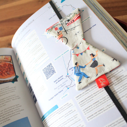 Marque page en tissu en forme de noeud papillon en tissu avec imprimé guinguette parisienne