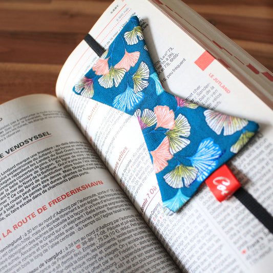 Marque page en tissu en forme de noeud papillon en tissu avec imprimé feuilles de gingko