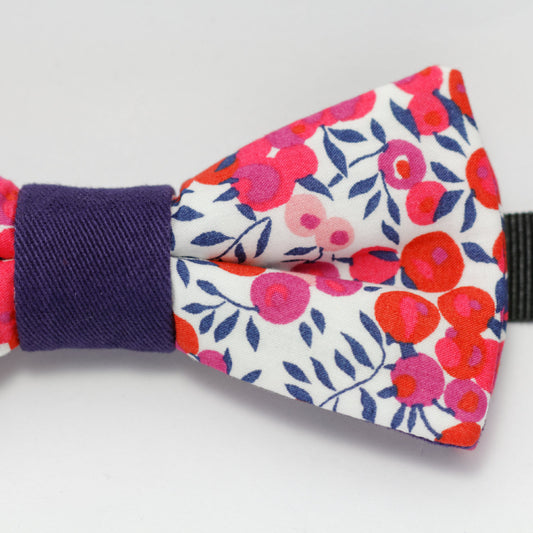 Noeud papillon bleu blanc rouge fleuri "Le battement d'ailes du papillon"