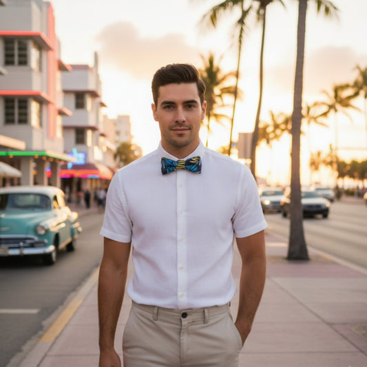 Noeud papillon bleu jungle "Miami Vice"