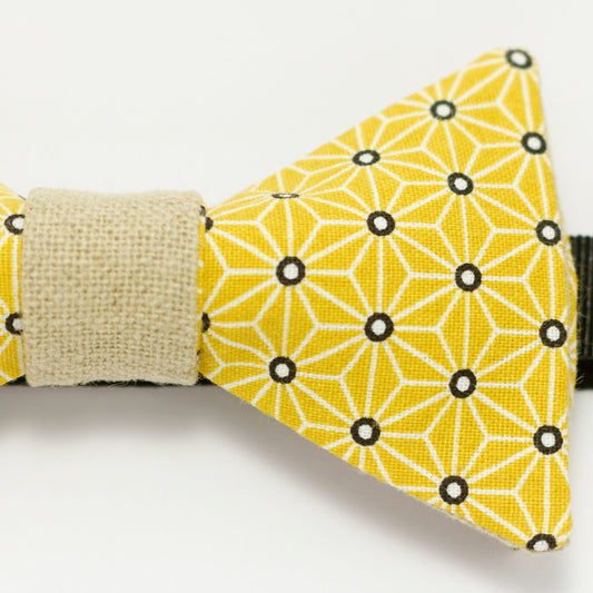 Noeud papillon motif japonais asanoha "Fleur de moutarde"