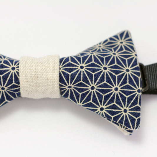 Noeud papillon motif japonais asanoha "Guerrier Gentilhomme Bleu"