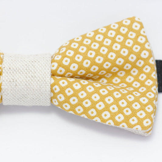 Noeud papillon jaune à pois shibori "Pois galant moutarde"