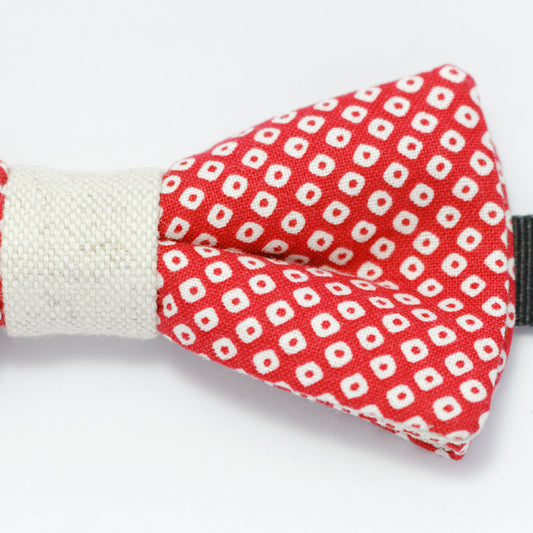 Noeud papillon rouge à pois shibori "Pois galant rouge"