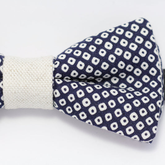 Noeud papillon bleu à pois shibori "Pois galant bleu"