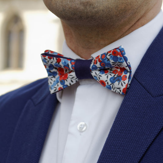 Noeud papillon bleu fleuri "Un soir à Vérone"