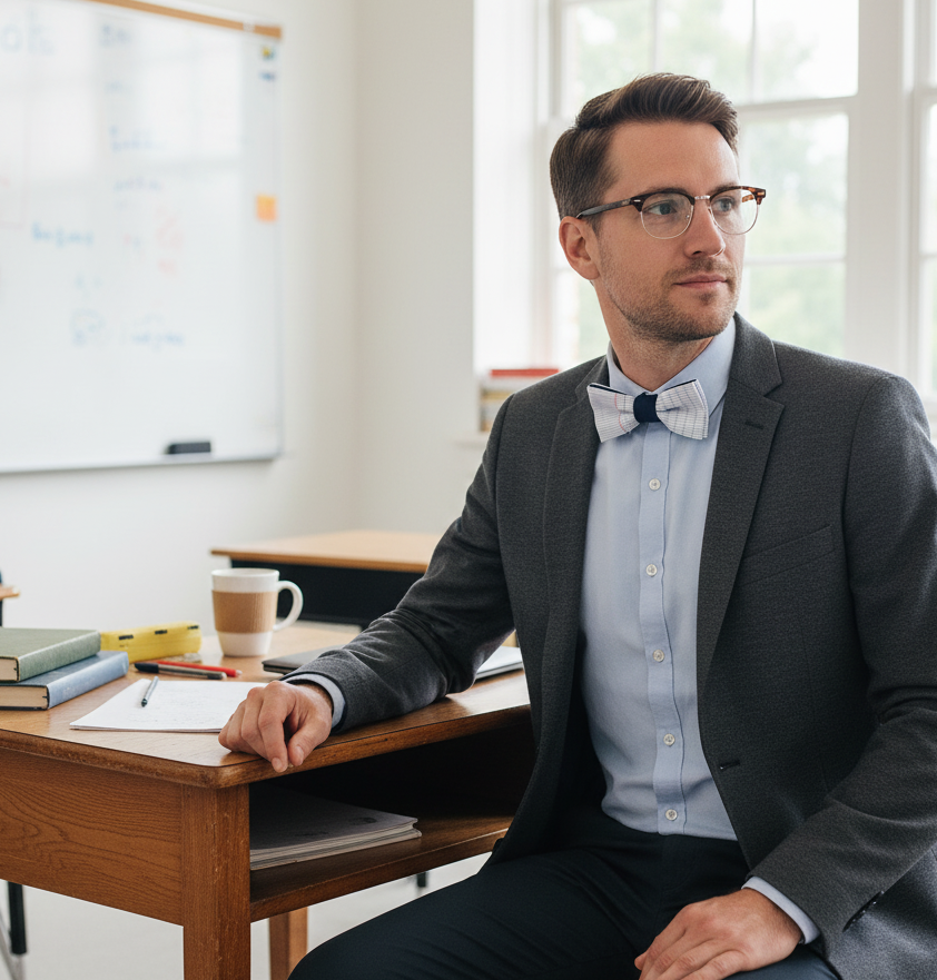 "Copies doubles" est un noeud papillon avec un imprimé grands carreaux de cahier sur sa face. Son revers est bleu marine. Il a une coupe droite. Un incontournable pour les écoliers et les professeurs, maitre d'écoles.