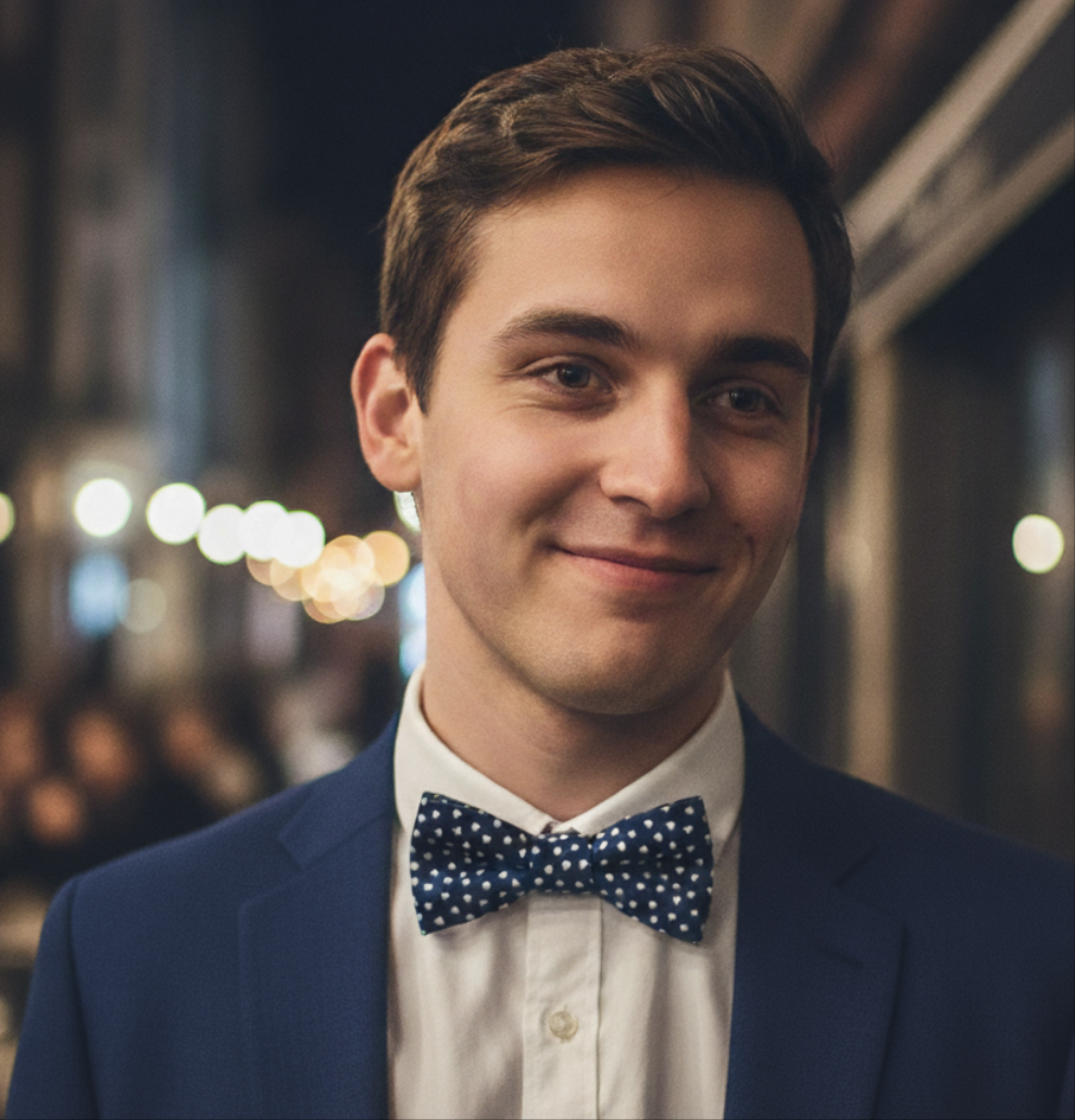 Noeud papillon bleu avec petits coeurs "Mon amoureux"