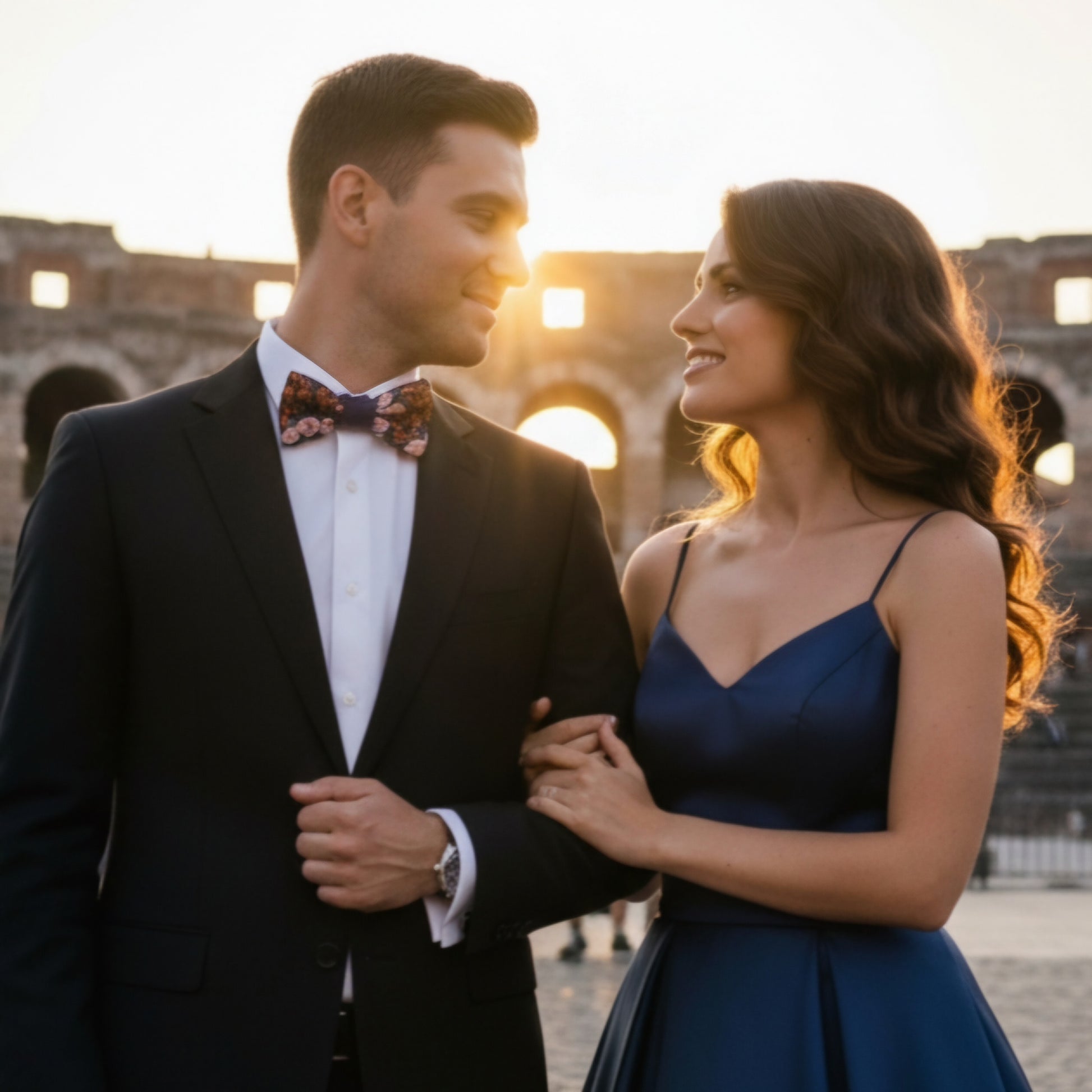 "Un soir à Vérone" est un noeud papillon idéal pour une soirée d'été. Pour aller à l'opéra ou pour un diner romantique.