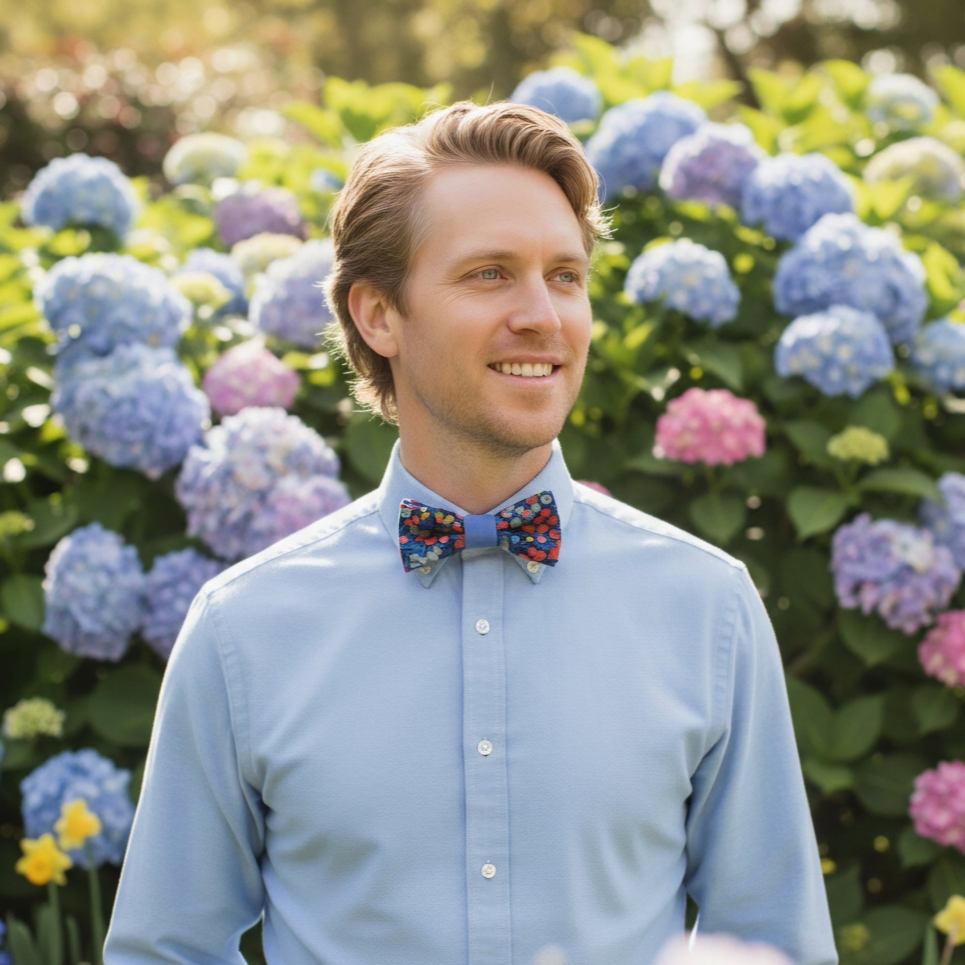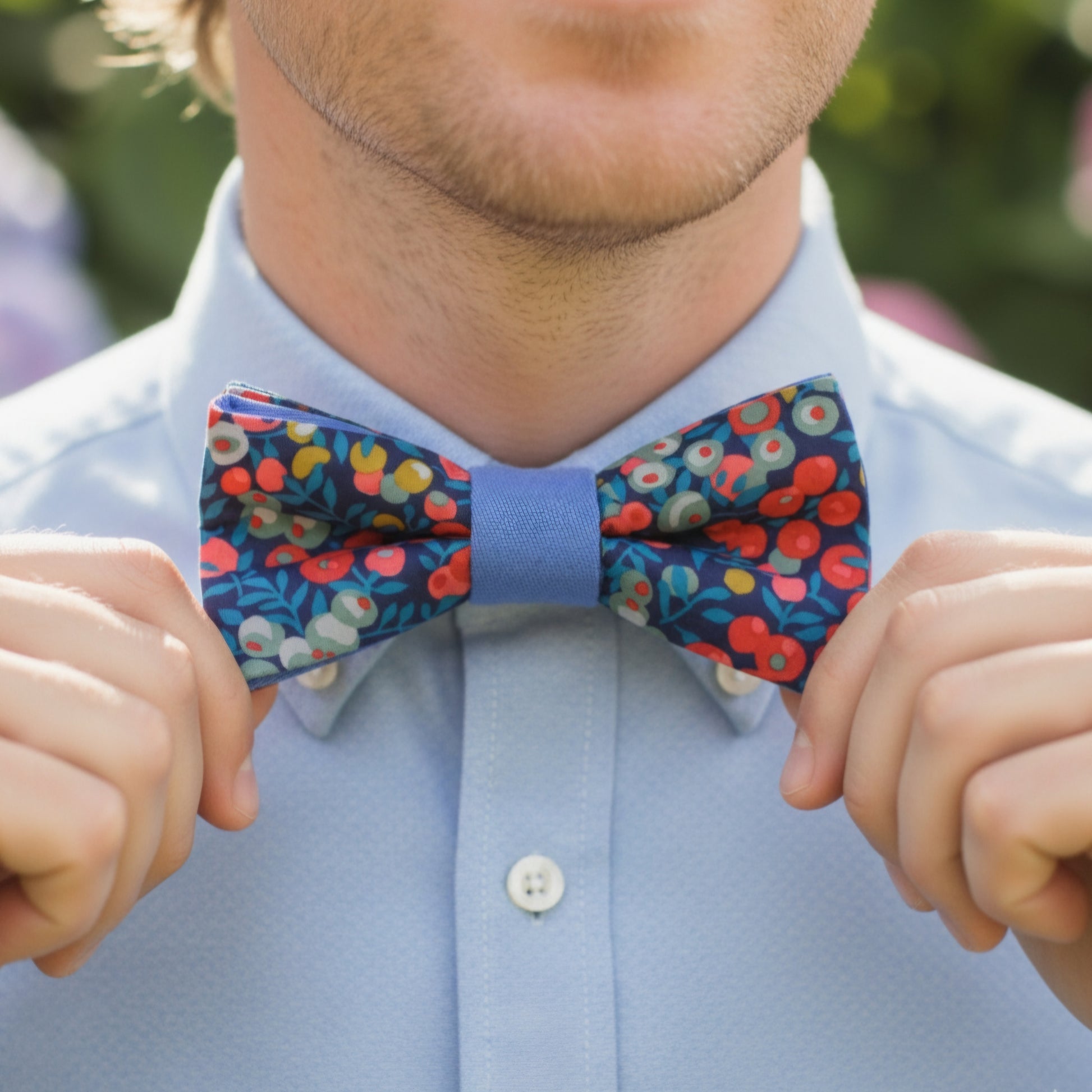 Noeud papillon bleu fleuri "Varengeville"