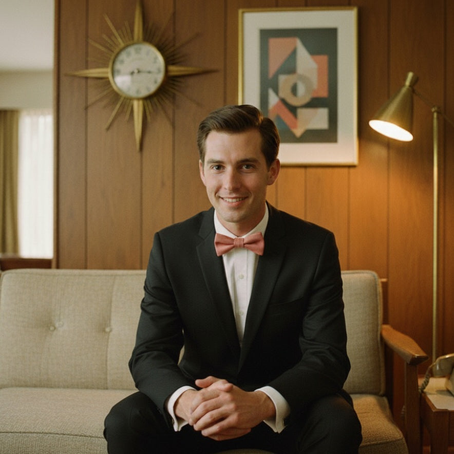 "Mr Sandman" est un nœud papillon sobre mais très chic. Il est un hommage aux costumes des années 60 aux Etats Unis. Il est en coton rouge et blanc chiné.