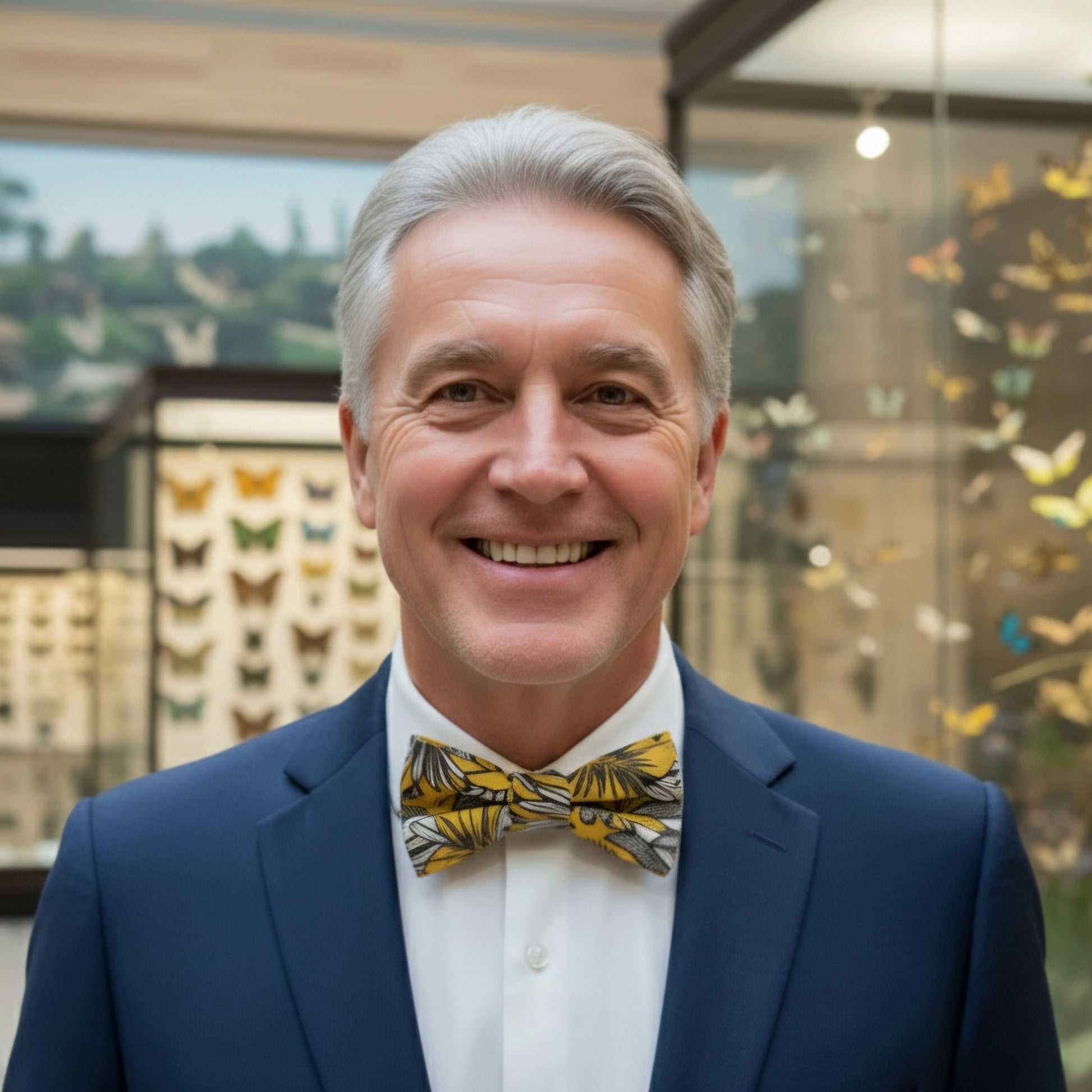 Noeud papillon jaune avec imprimé floral "Histoire naturelle moutarde"