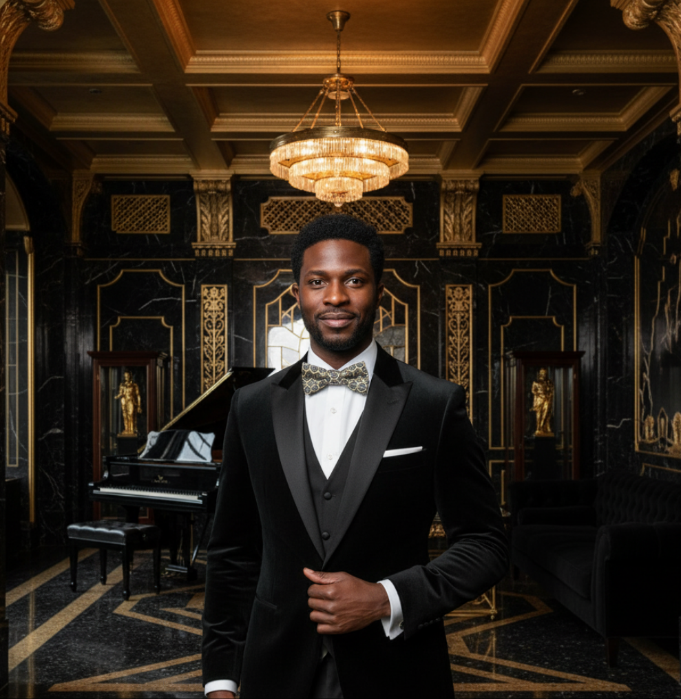 "Ananas noir" est un noeud papillon noir avec des dessins hexagonaux aux liserés jaunes et blanc. Le noeud papillon a une coupe bombée.